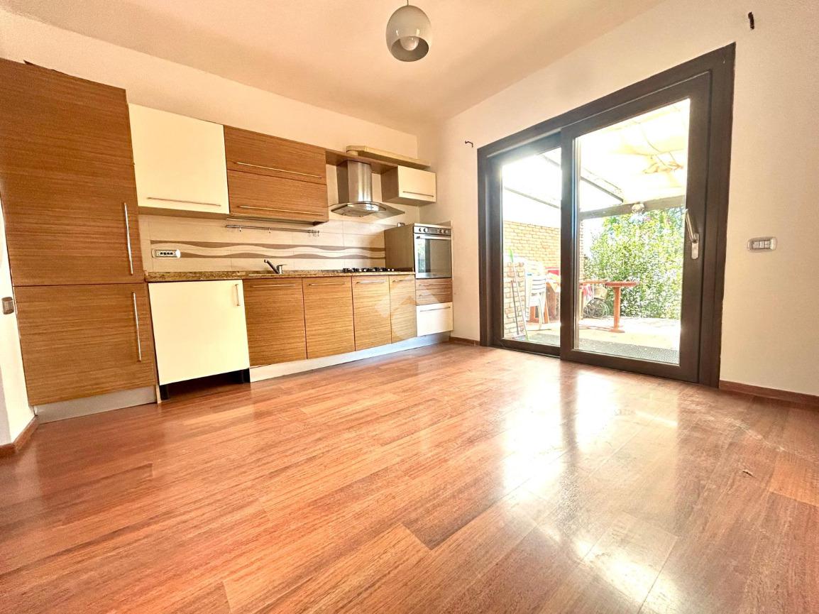 Accedendo attraverso il cortile carrabile in condivisione con il primo piano, proseguiamo al piano rialzato dove si sviluppa il nostro immobile composto da un ampio e luminoso soggiorno - cucina open space che si affacciano sul giardino retrostante; una camera matrimoniale con cabina armadio, una camera singola, un ripostiglio e un bagno con doccia multi funzione.